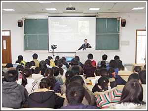 帅新武先生联系社会现状和华立医药的发展史,给广大师生讲解了自己在职场20多来的创业经验。本次讲座帅先生以“浙商的两件棉袄”为题,他先从成事三字经——“思”则通、“悟”则达、“行”则致展开话题,然后讲解了 “如何培养浙商精神”和“学院该怎样培养学生”,最后重点讲解了浙商两件棉袄中的第一件棉袄——战略突破,分别从“一个战略管理体系的六大要素”、“企业高层的心病”、“如何理解战略突破”、“浙商寻求战略突破的原因”、“浙商实施战略突破的六种方法”等方面讲述了战略突破的策略和技巧。帅先生的讲座引起了广大师生的共鸣,赢得阵阵掌声。在接下来的一堂课中,帅先生将给广大师生讲解浙商的第二件棉袄——策略创新。